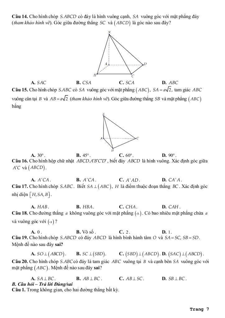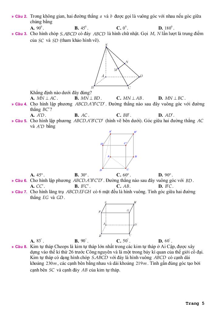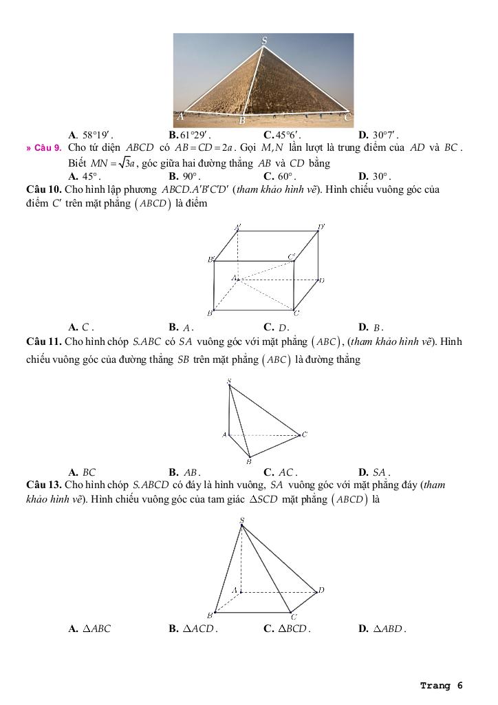 + Bài 3: Góc giữa đường thẳng và mặt phẳng. Góc nhị diện.