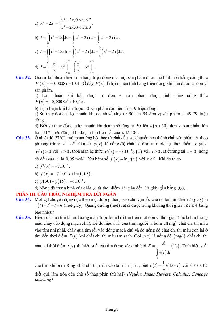 – Ứng dụng được vào các bài toán thực tiễn liên quan đến nguyên hàm, tích phân.