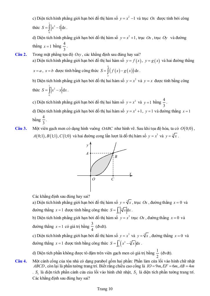 – Biết cách sử dụng tích phân để tính diện tích của một hình phẳng hay thể tích của một vật thể tròn xoay.