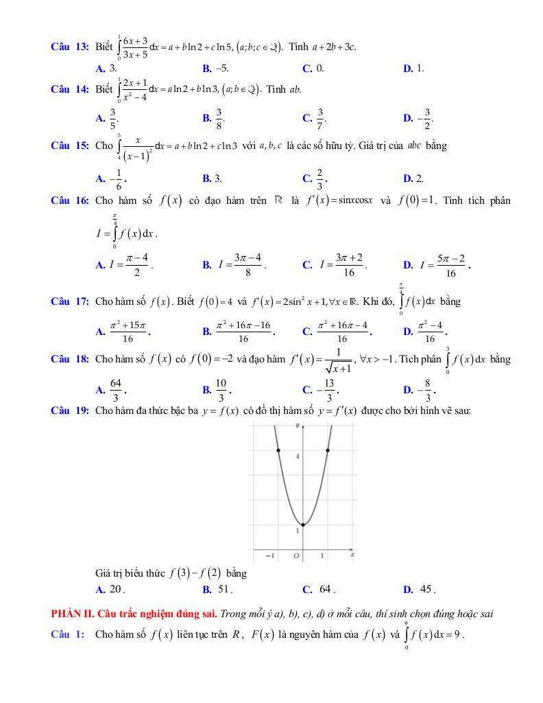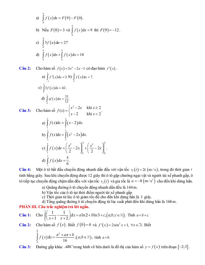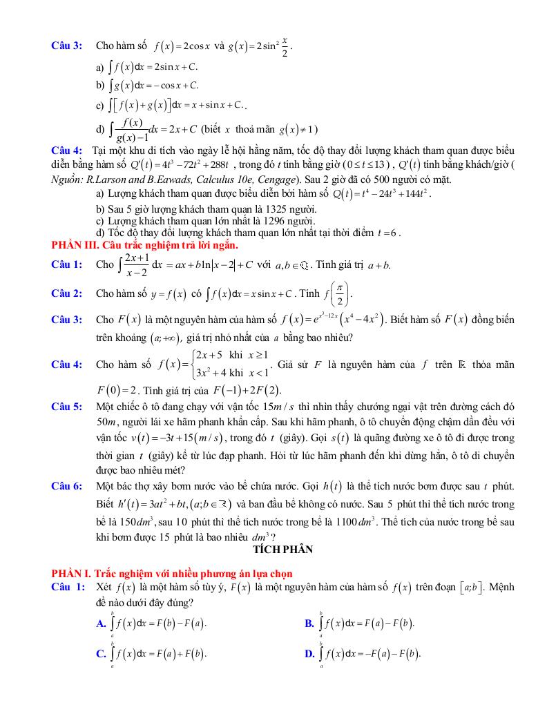 – Tích phân: định nghĩa, tính chất của tích phân, tính tích phân trong những trường hợp đơn giản, vận dụng tích phân giải quyết một số bài toán liên quan đến thực tiễn.