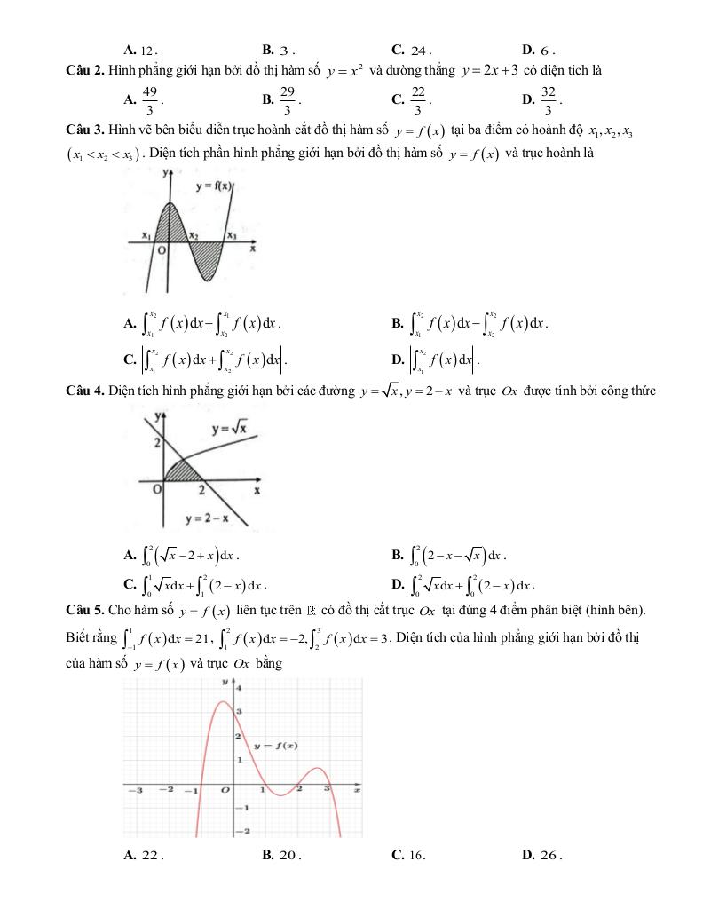 – Ứng dụng hình học của tích phân để tính diện tích hình phẳng, thể tích của một số vật thể.