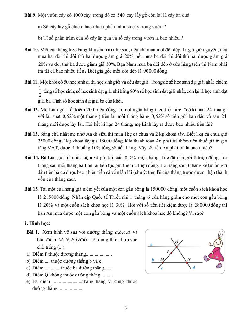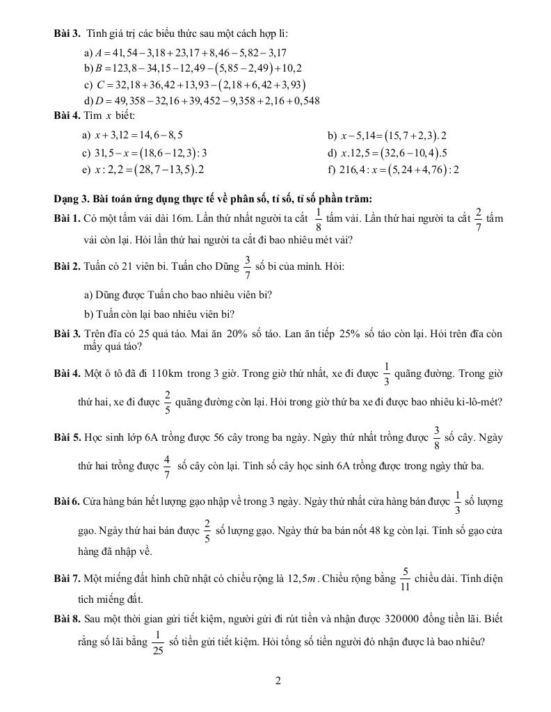 + Dạng 3. Bài toán ứng dụng thực tế về phân số, tỉ số, tỉ số phần trăm.