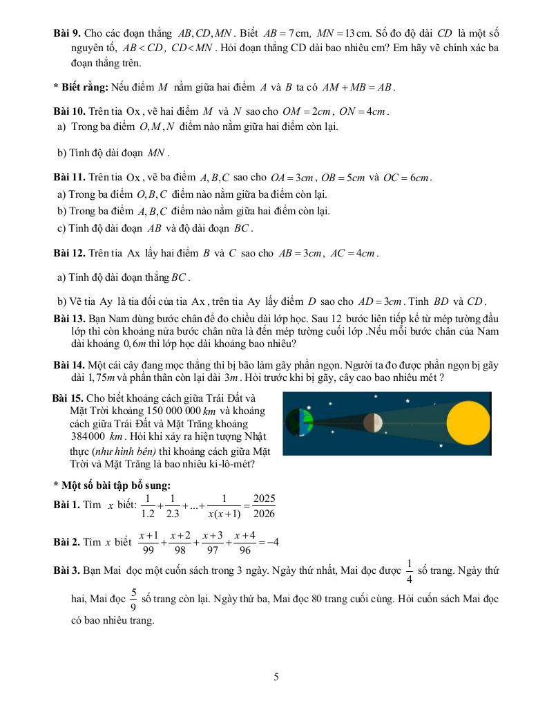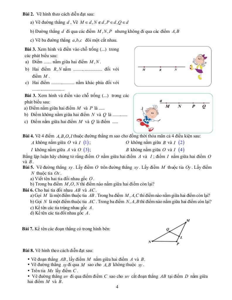 + Hết bài 34: Điểm, đường thẳng, tia và đoạn thẳng. Điểm nằm giữa hai điểm. Độ dài đoạn thẳng.