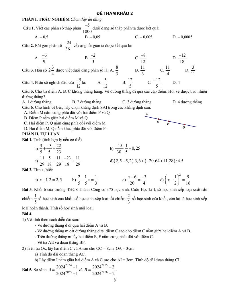 Giải Toán đề cương giữa kỳ 2 toán 6 năm 2025 – 2026 trường thcs thành công – hà nội với Đáp Án Mới Nhất