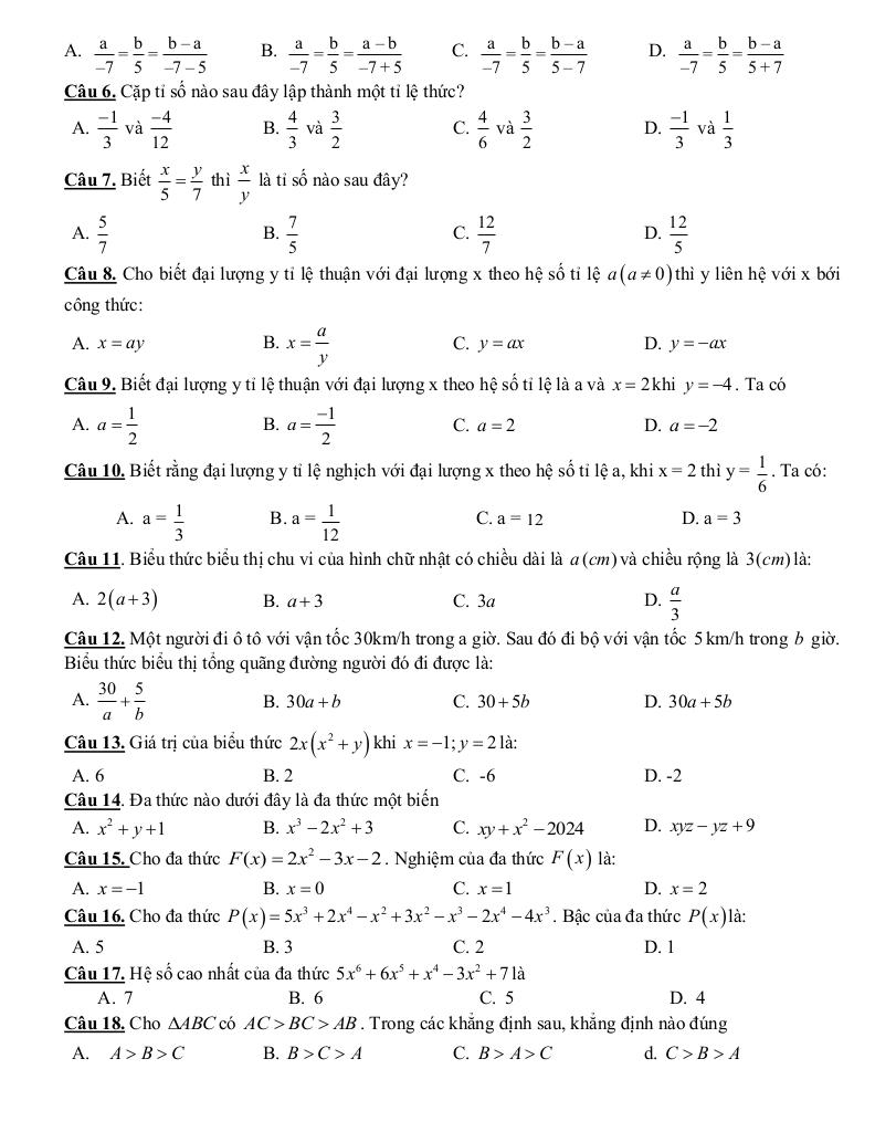 3. Biểu thức đại số – Đa thức một biến (đơn thức, đa thức một biến).