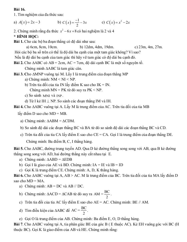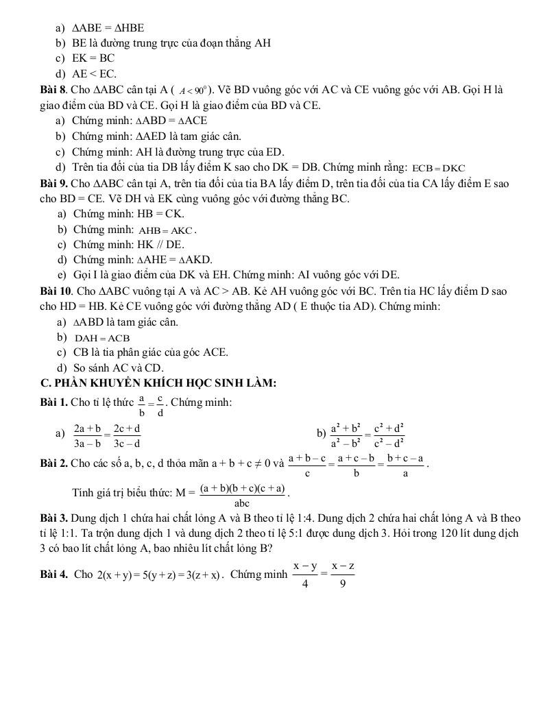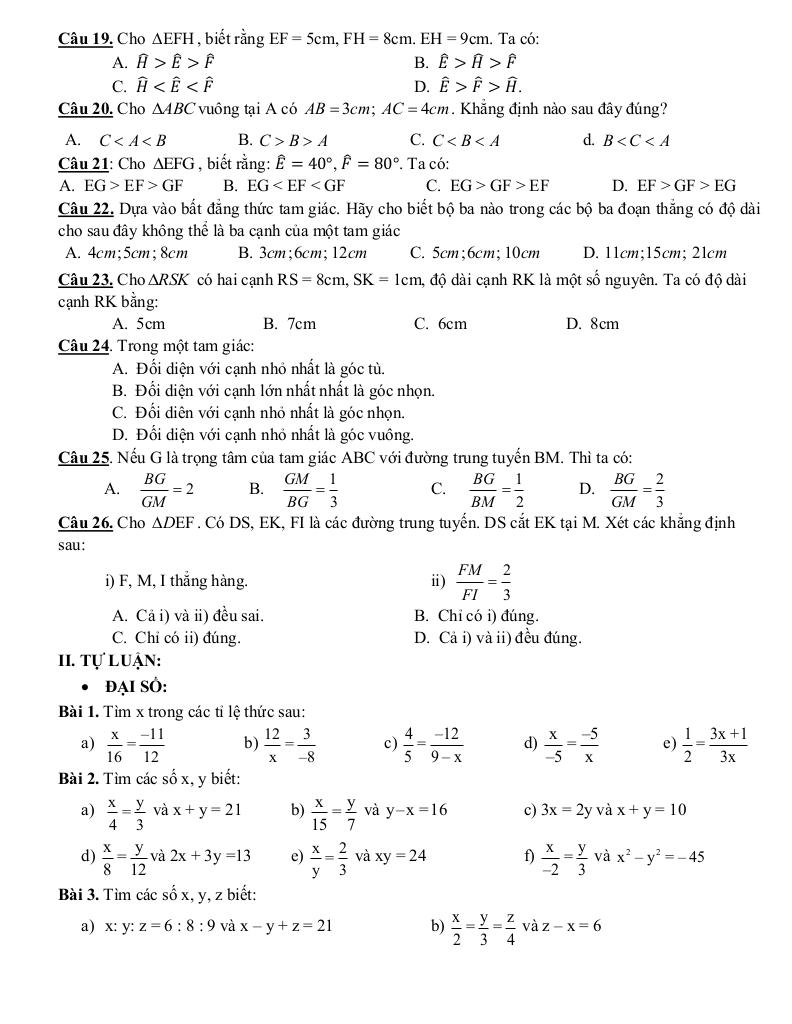 4. Quan hệ giữa góc và cạnh đối diện trong tam giác, quan hệ giữa đường vuông góc và đường xiên, quan hệ giữa ba cạnh của tam giác.