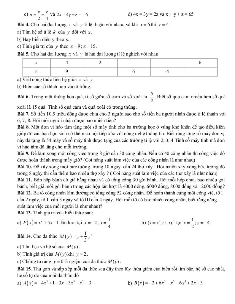 2. Đại lượng tỉ lệ thuận, tỉ lệ nghịch.