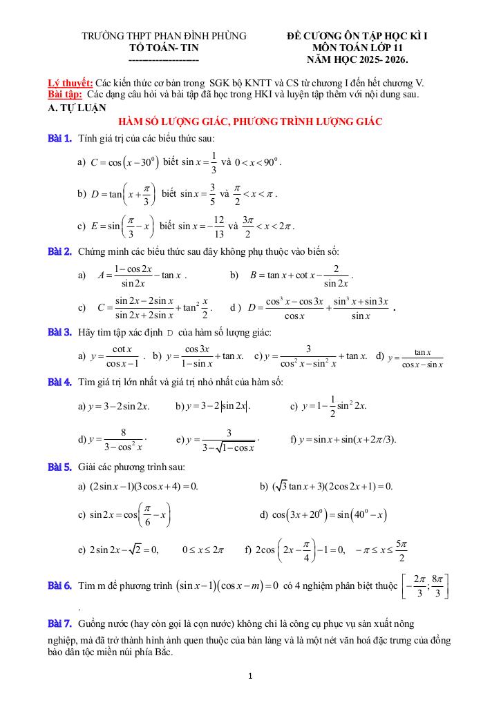 Toán học luôn là một môn học quan trọng, giúp học sinh phát triển tư duy logic và kỹ năng giải quyết vấn đề. Để hỗ trợ các bạn học sinh và giáo viên trong việc học tập và giảng dạy, bài viết này sẽ cung cấp lời giải chi tiết và đáp án chính xác cho chủ đề đề cương học kì 1 toán 11 năm 2025 – 2026 trường thpt phan đình phùng – hà nội, giúp bạn hiểu sâu và tự tin hơn khi làm bài tập.