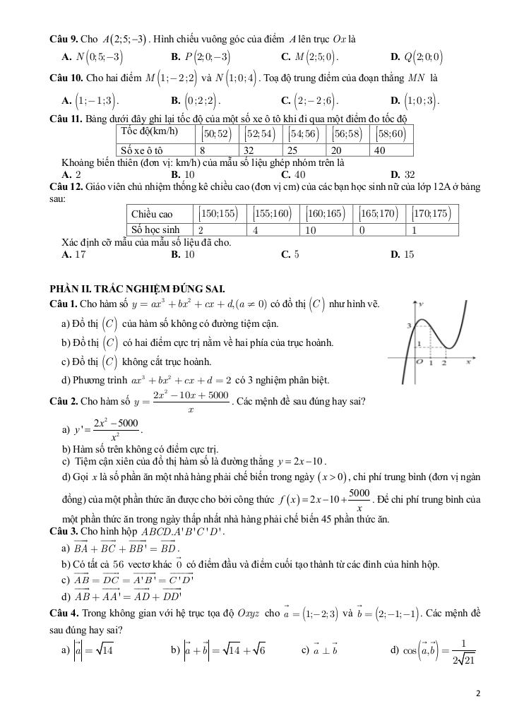 PHẦN II. TRẮC NGHIỆM ĐÚNG SAI.