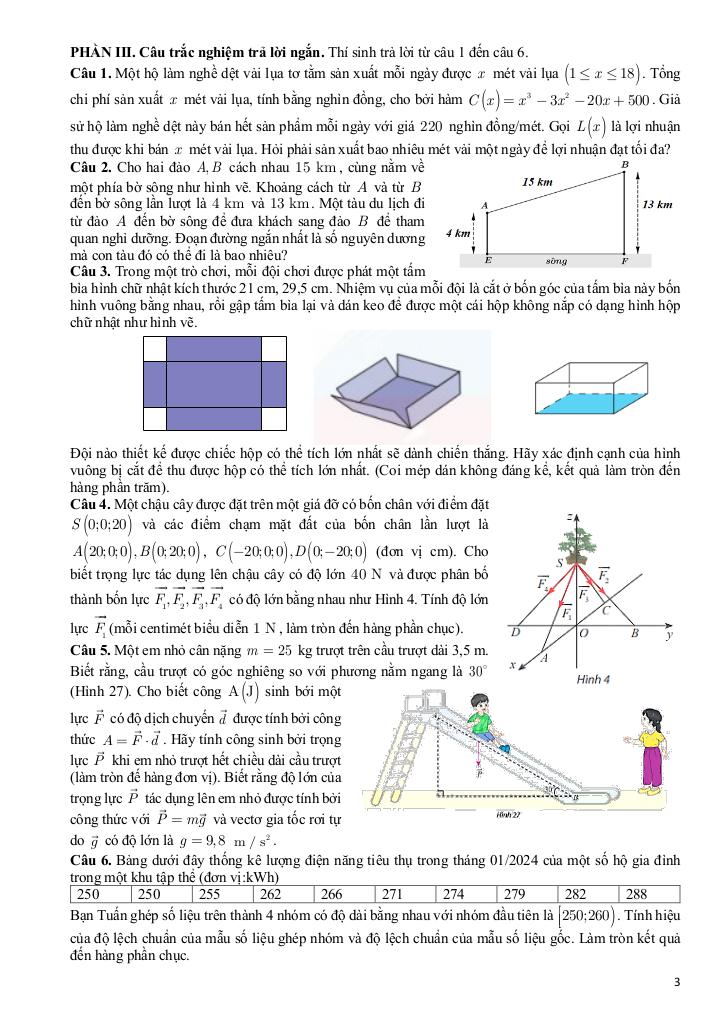 PHẦN III. TRẮC NGHIỆM TRẢ LỜI NGẮN.