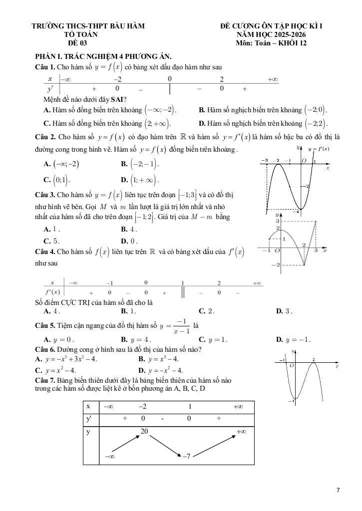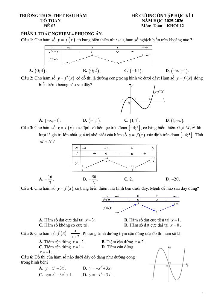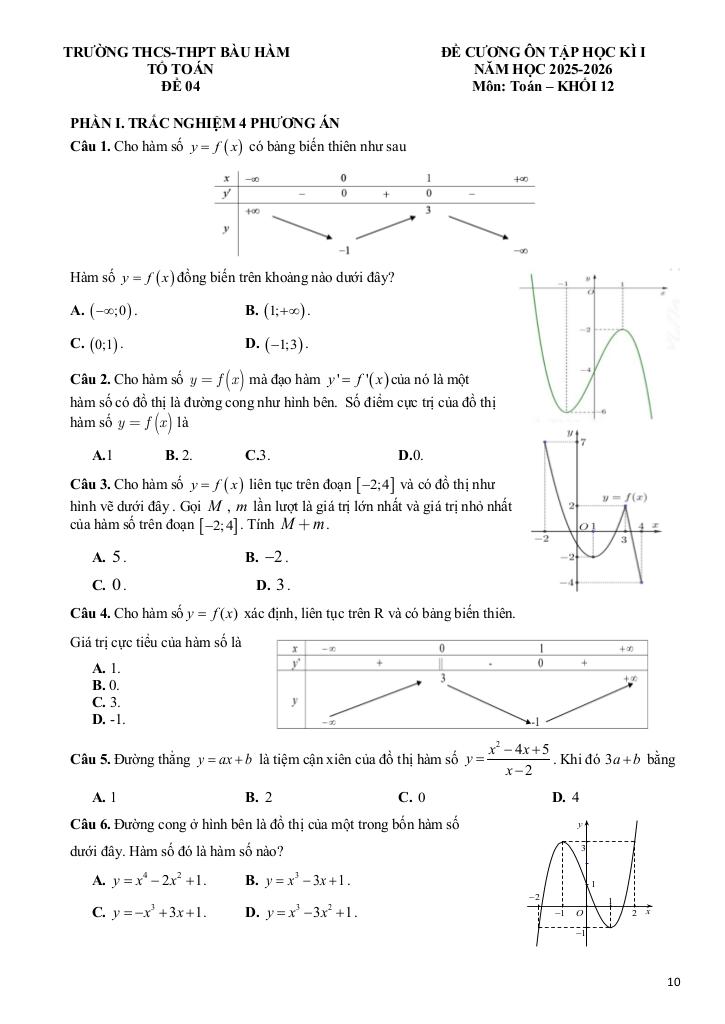 Toán học luôn là một môn học quan trọng, giúp học sinh phát triển tư duy logic và kỹ năng giải quyết vấn đề. Để hỗ trợ các bạn học sinh và giáo viên trong việc học tập và giảng dạy, bài viết này sẽ cung cấp lời giải chi tiết và đáp án chính xác cho chủ đề đề cương học kì 1 toán 12 năm 2025 – 2026 trường thcs-thpt bàu hàm – đồng nai, giúp bạn hiểu sâu và tự tin hơn khi làm bài tập.