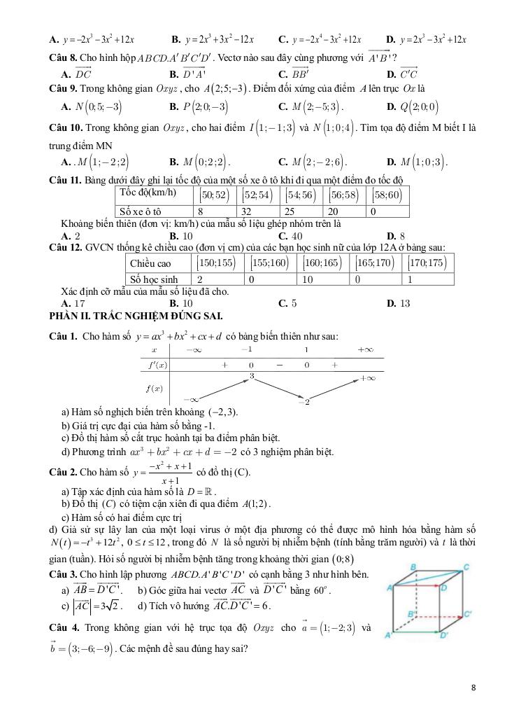 2. Các Bài Tập Đặc Trưng trong đề cương học kì 1 toán 12 năm 2025 – 2026 trường thcs-thpt bàu hàm – đồng nai