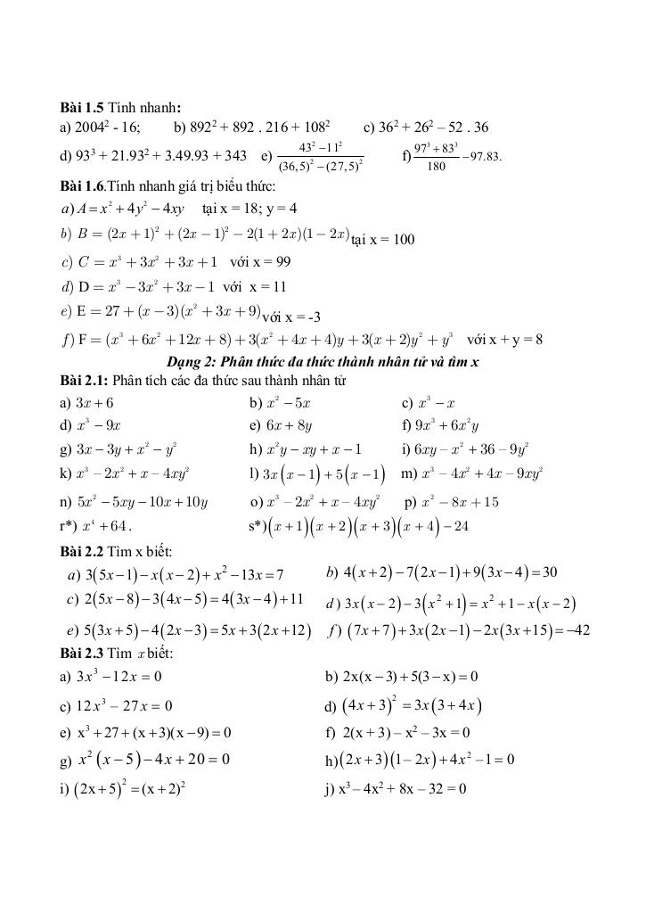 Dạng 2: Phân thức đa thức thành nhân tử và tìm x.