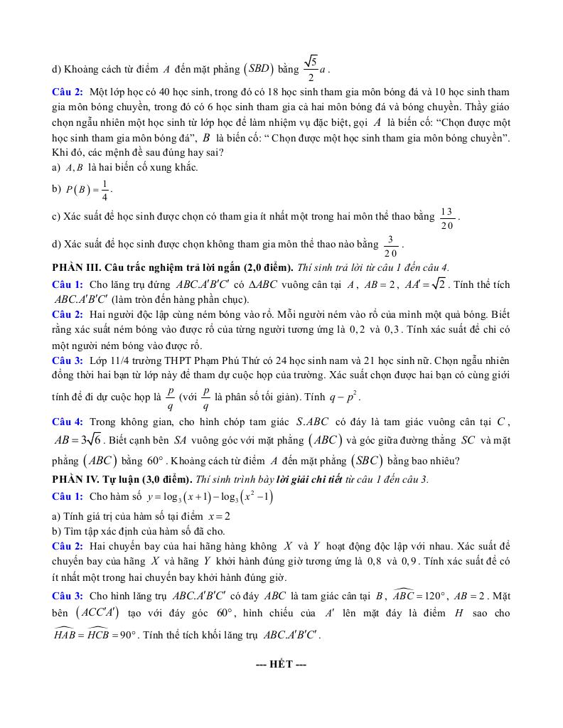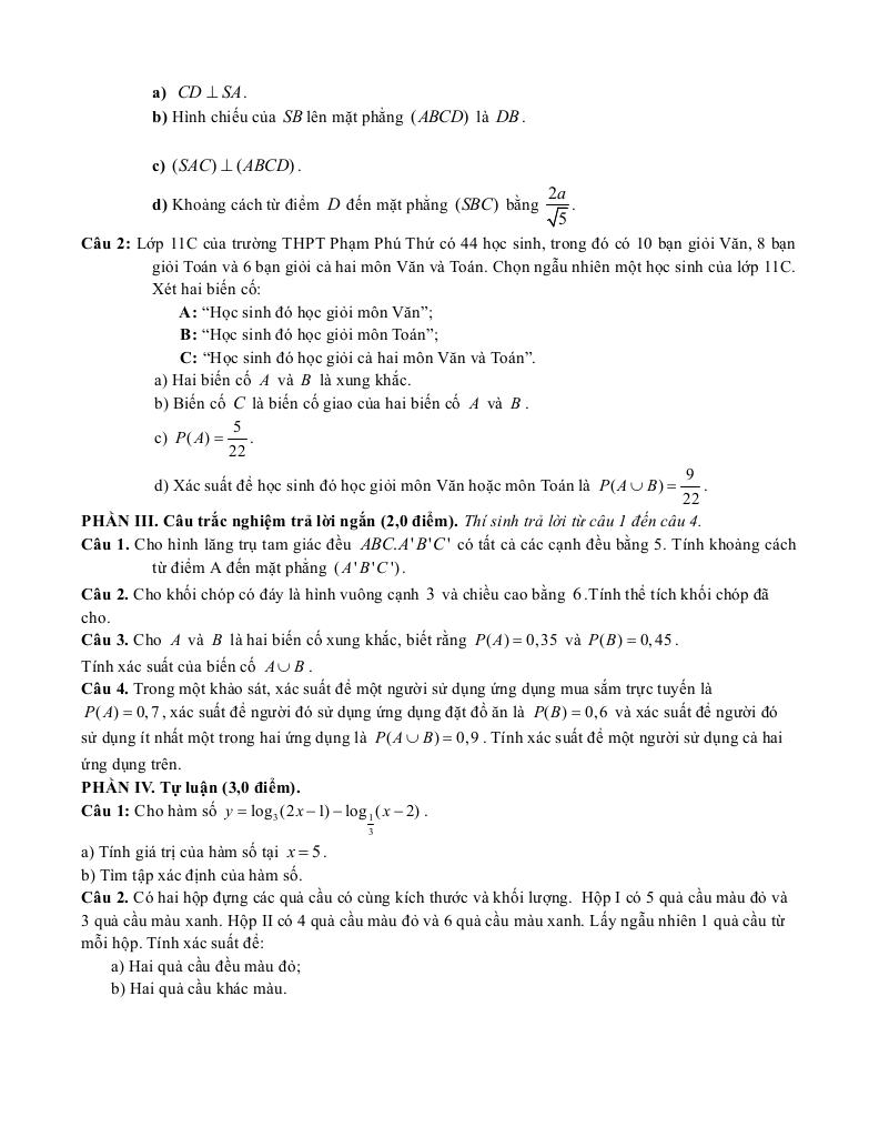 Toán học luôn là một môn học quan trọng, giúp học sinh phát triển tư duy logic và kỹ năng giải quyết vấn đề. Để hỗ trợ các bạn học sinh và giáo viên trong việc học tập và giảng dạy, bài viết này sẽ cung cấp lời giải chi tiết và đáp án chính xác cho chủ đề đề cương học kì 2 toán 11 năm 2025 – 2026 trường thpt phạm phú thứ – đà nẵng, giúp bạn hiểu sâu và tự tin hơn khi làm bài tập.