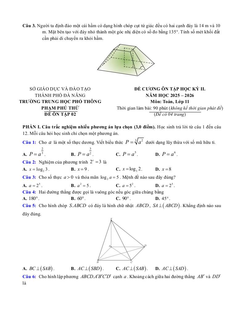 đề cương học kì 2 toán 11 năm 2025 – 2026 trường thpt phạm phú thứ – đà nẵng – hành trang không thể thiếu trong chuyên mục