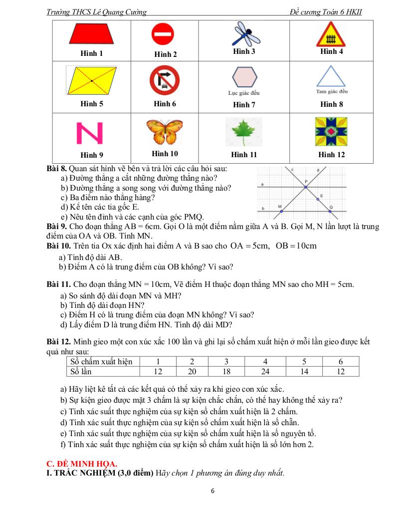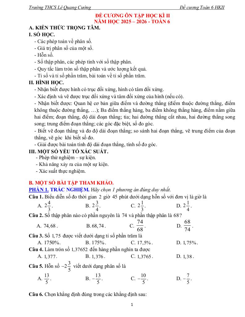 giaitoan.edu.vn giới thiệu đến quý thầy, cô giáo và các em học sinh đề cương ôn thi cuối học kì 2 môn Toán 6 năm học 2025 – 2026 trường THCS Lê Quang Cường, thành phố Hồ Chí Minh.