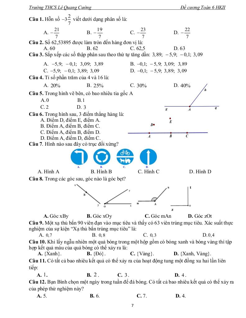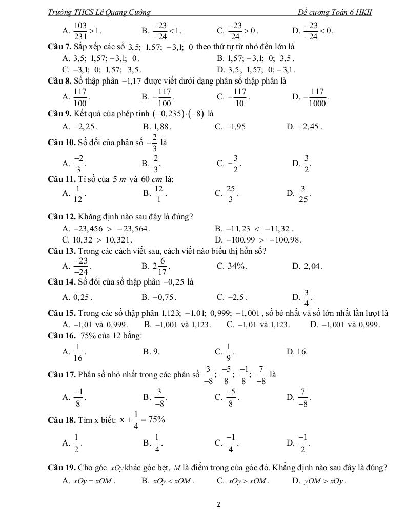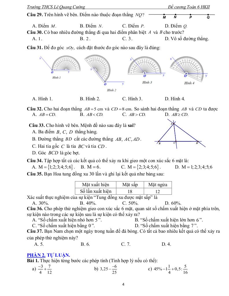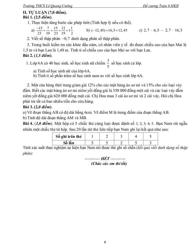 Giải Toán đề cương học kì 2 toán 6 năm 2025 – 2026 trường thcs lê quang cường – tp hcm với Đáp Án Mới Nhất
