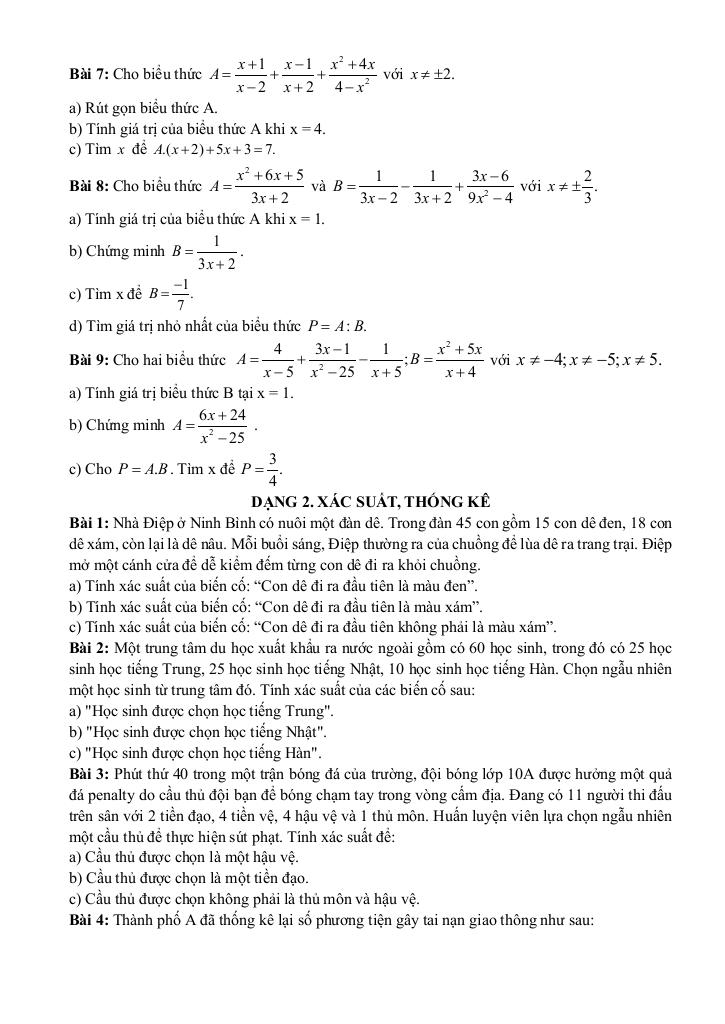 Dạng 2. Xác suất, thống kê.
