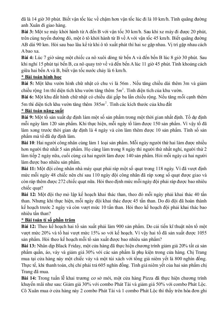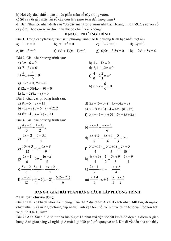 Phần Đại số: Ôn tập đến hết bài Ứng dụng của phương trình bậc nhất một ẩn.