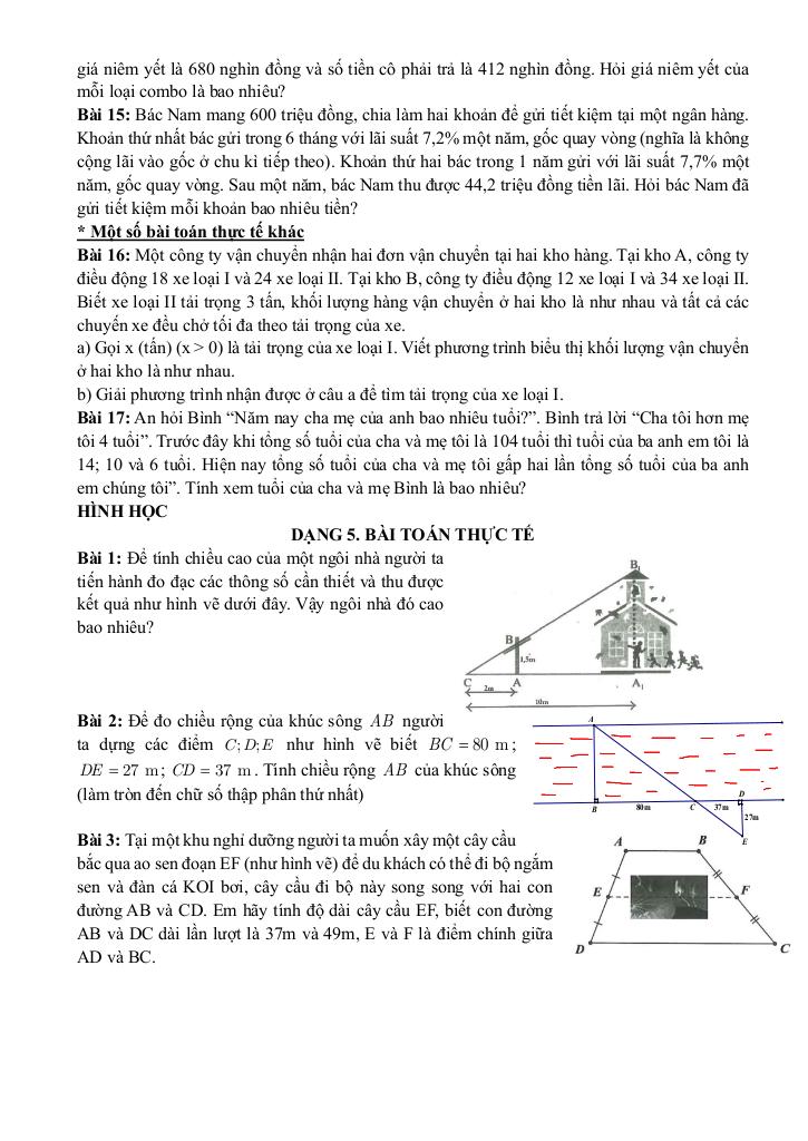 Dạng 5. Bài toán thực tế.