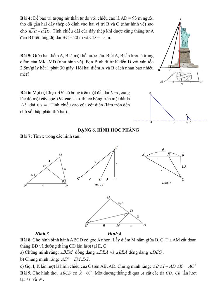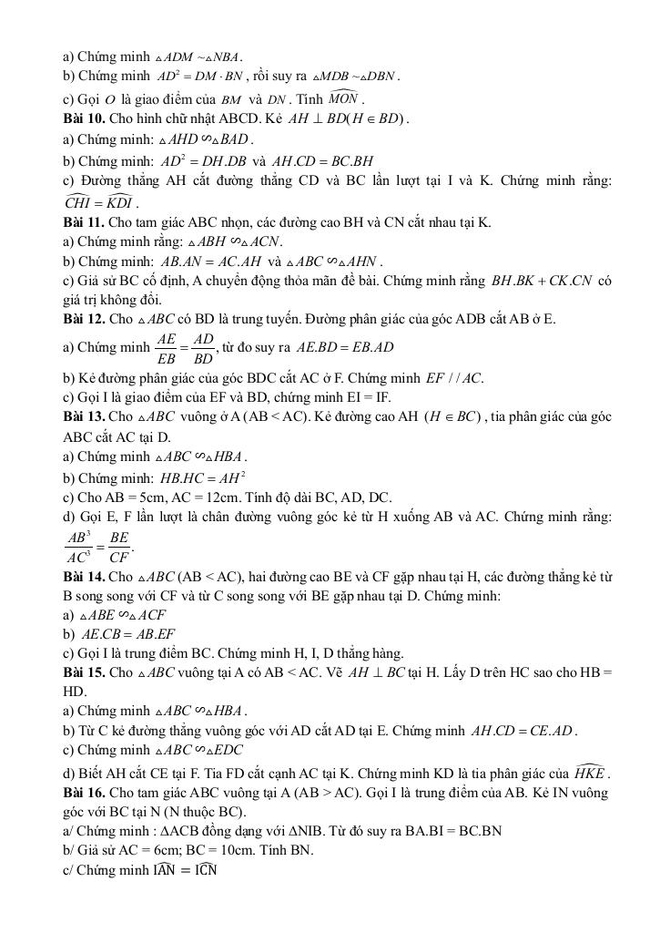 Phần Hình học: Ôn tập đến hết bài Trường hợp đồng dạng thứ ba của hai tam giác.