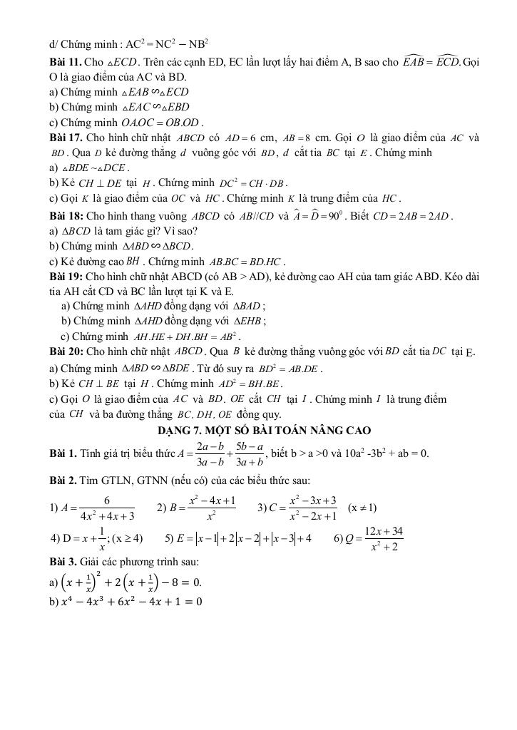 Dạng 7. Một số bài toán nâng cao.