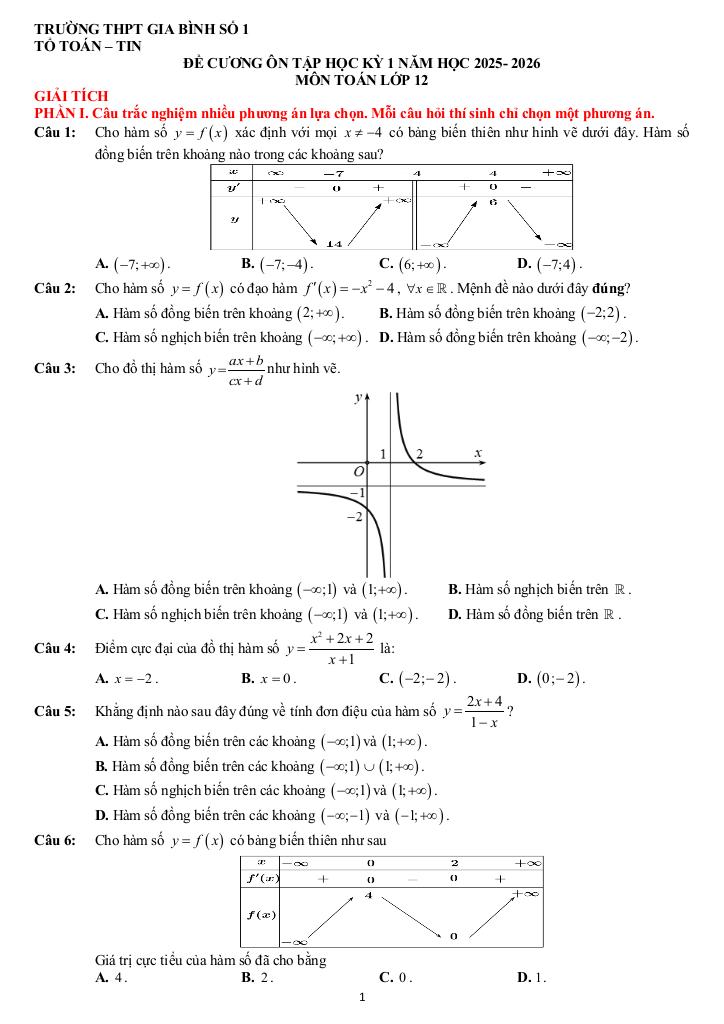 Toán học luôn là một môn học quan trọng, giúp học sinh phát triển tư duy logic và kỹ năng giải quyết vấn đề. Để hỗ trợ các bạn học sinh và giáo viên trong việc học tập và giảng dạy, bài viết này sẽ cung cấp lời giải chi tiết và đáp án chính xác cho chủ đề đề cương học kỳ 1 toán 12 năm 2025 – 2026 trường thpt gia bình 1 – bắc ninh, giúp bạn hiểu sâu và tự tin hơn khi làm bài tập.