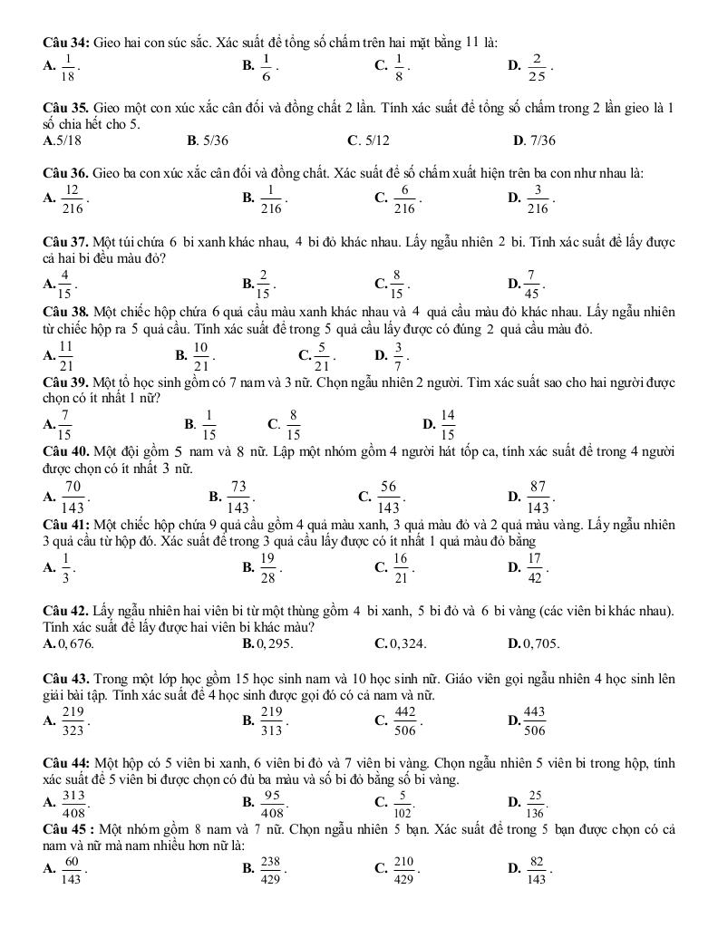 Chương IX. Tính xác suất.