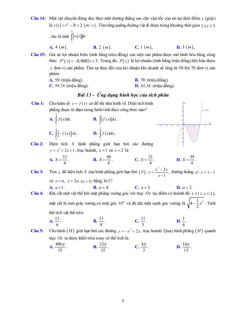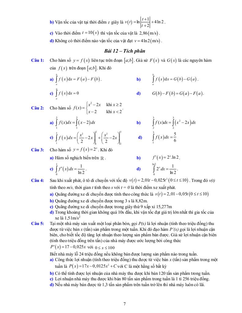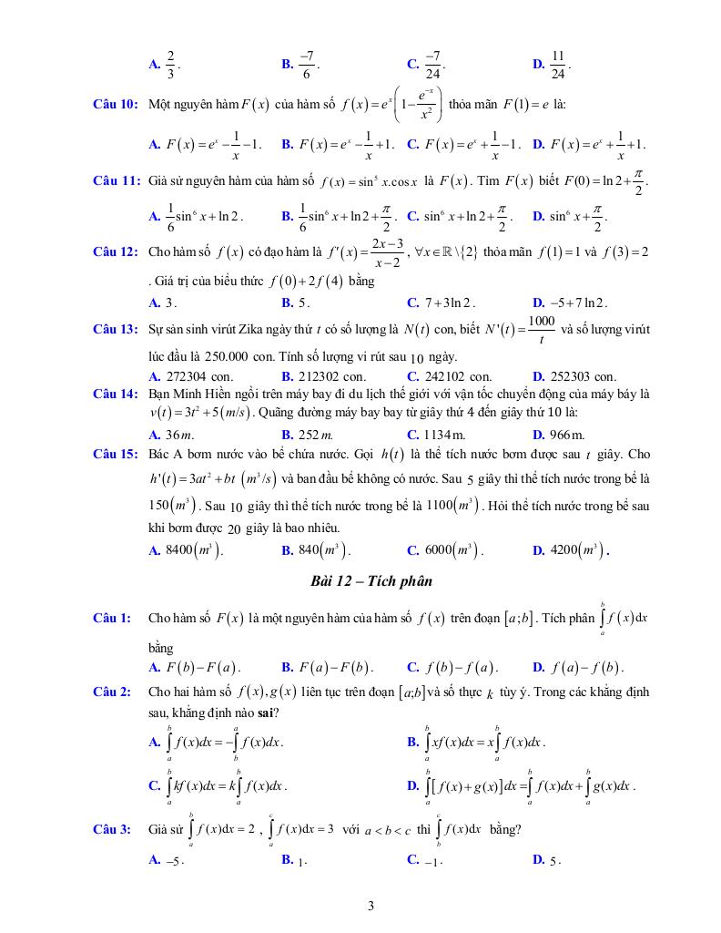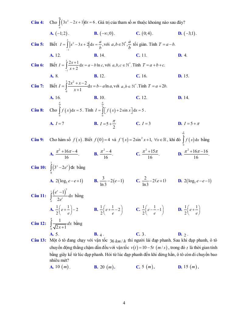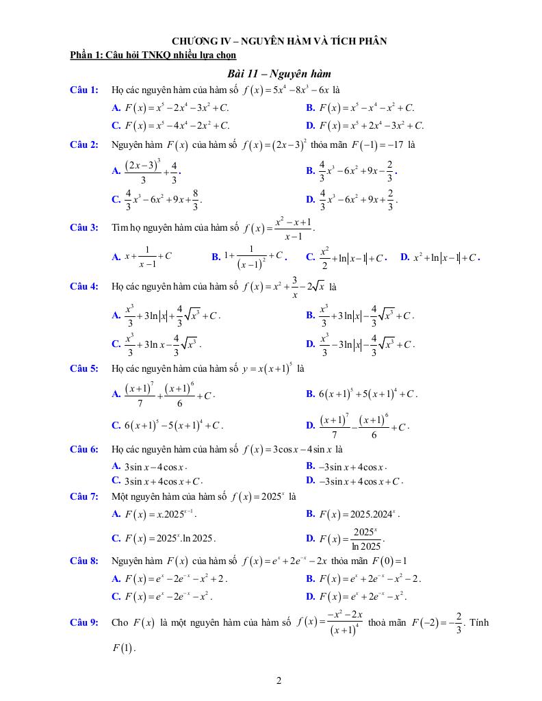 Chương IV. NGUYÊN HÀM – TÍCH PHÂN VÀ ỨNG DỤNG.