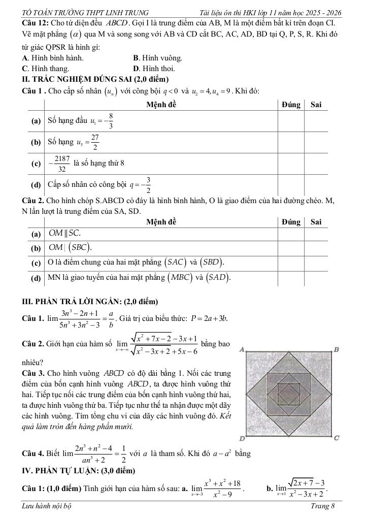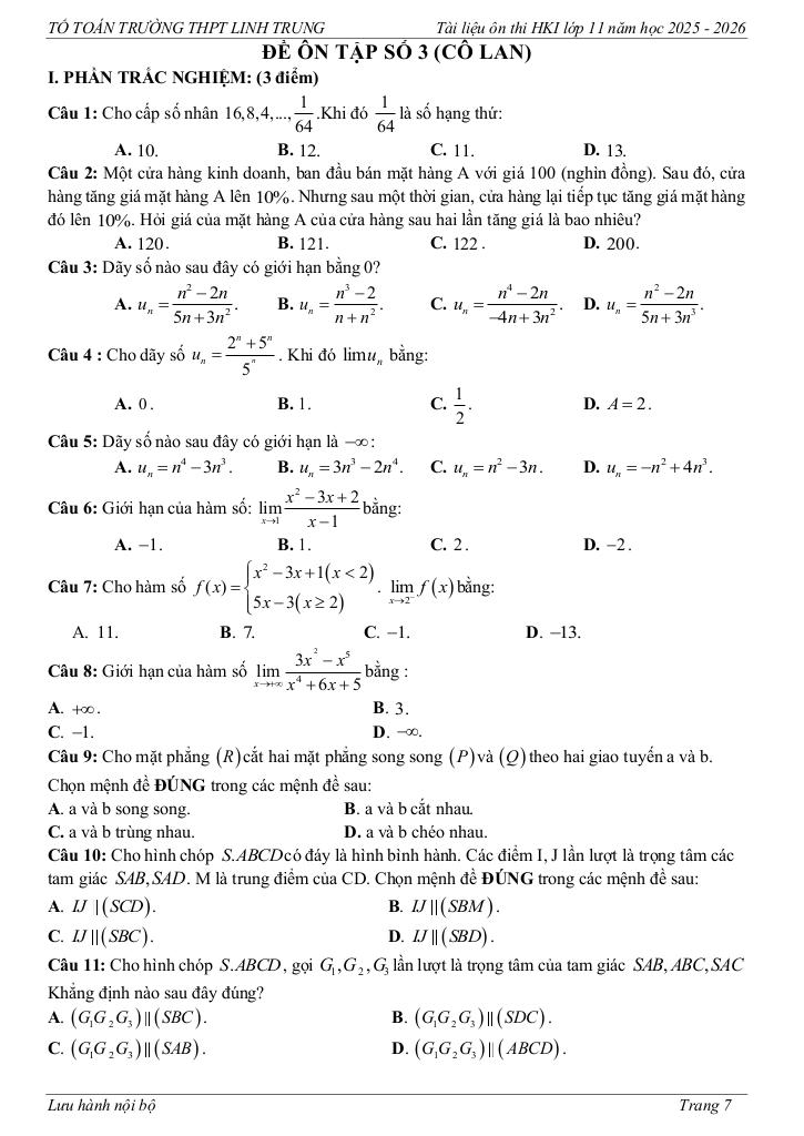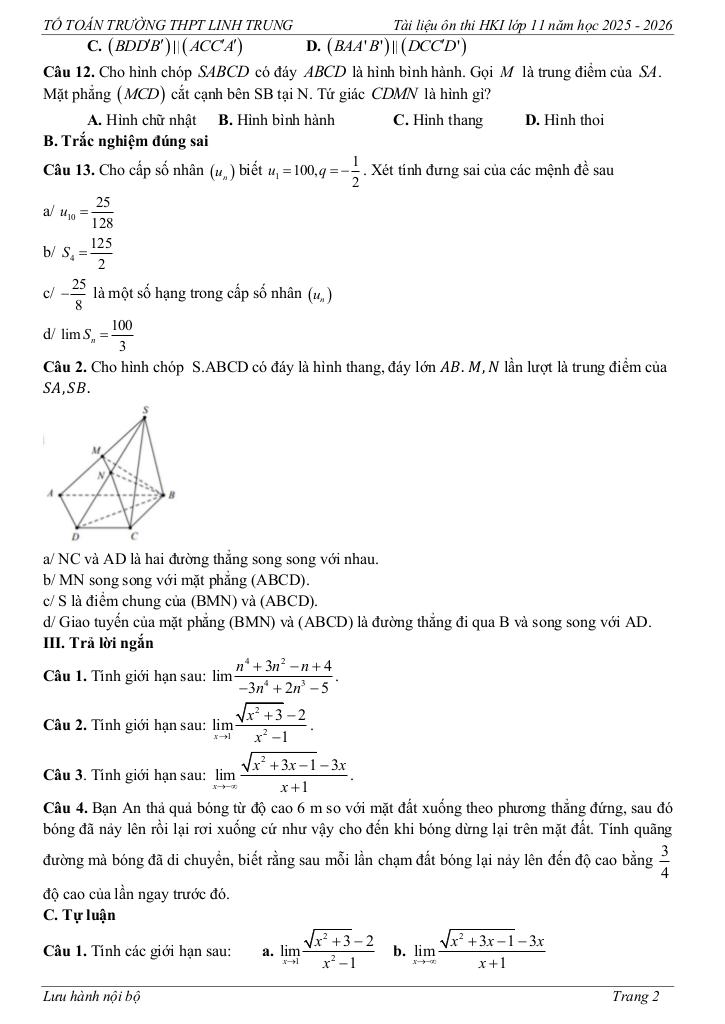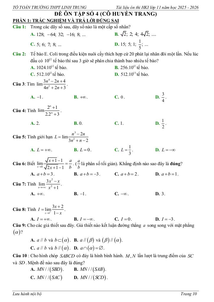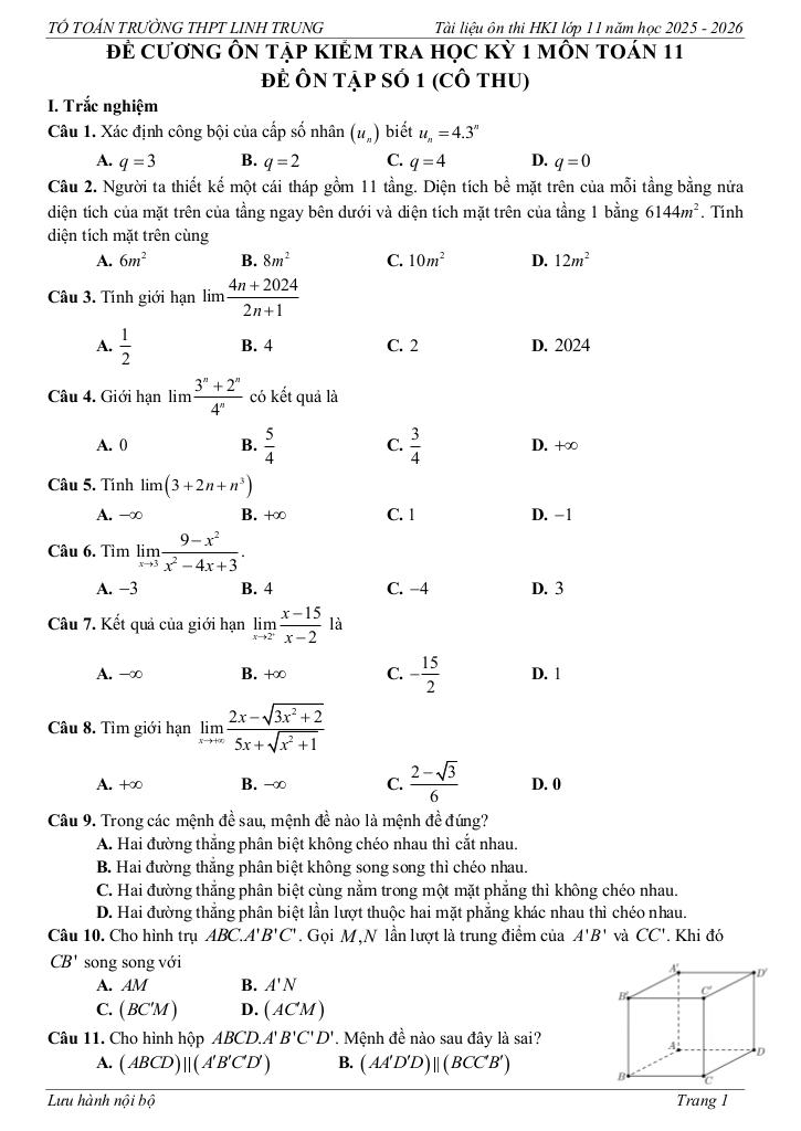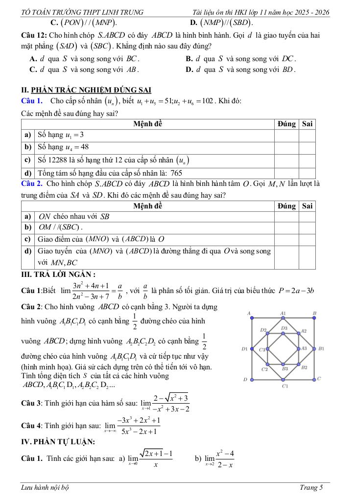 Toán học luôn là một môn học quan trọng, giúp học sinh phát triển tư duy logic và kỹ năng giải quyết vấn đề. Để hỗ trợ các bạn học sinh và giáo viên trong việc học tập và giảng dạy, bài viết này sẽ cung cấp lời giải chi tiết và đáp án chính xác cho chủ đề đề cương ôn tập hk1 toán 11 năm 2025 – 2026 trường thpt linh trung – tp hcm, giúp bạn hiểu sâu và tự tin hơn khi làm bài tập.