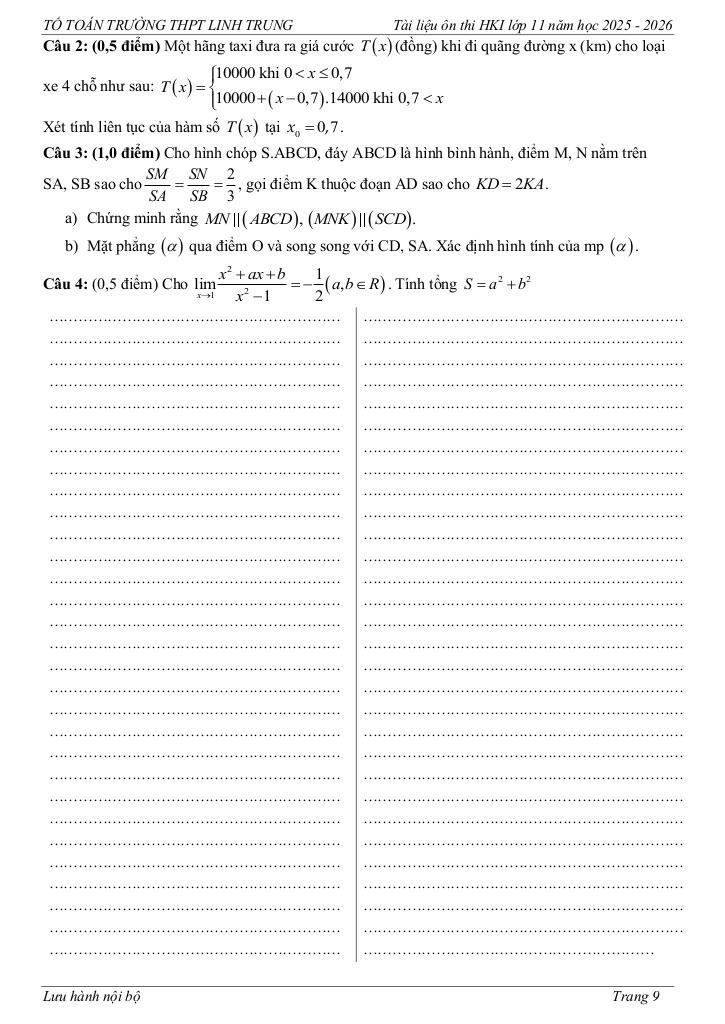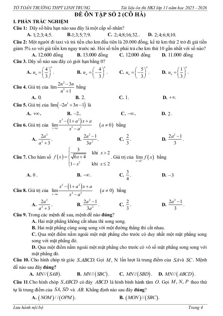 Giải Toán đề cương ôn tập hk1 toán 11 năm 2025 – 2026 trường thpt linh trung – tp hcm với Đáp Án Mới Nhất