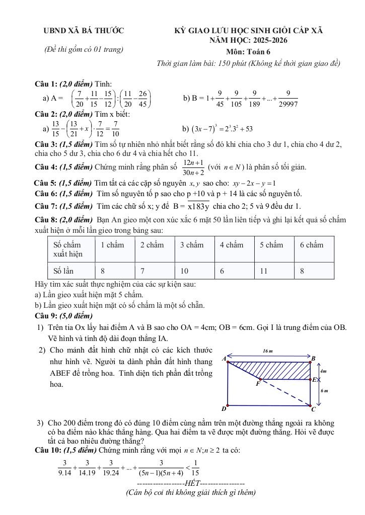 Trích dẫn Đề giao lưu HSG Toán 6 năm 2025 – 2026 xã Bá Thước – Thanh Hóa:
