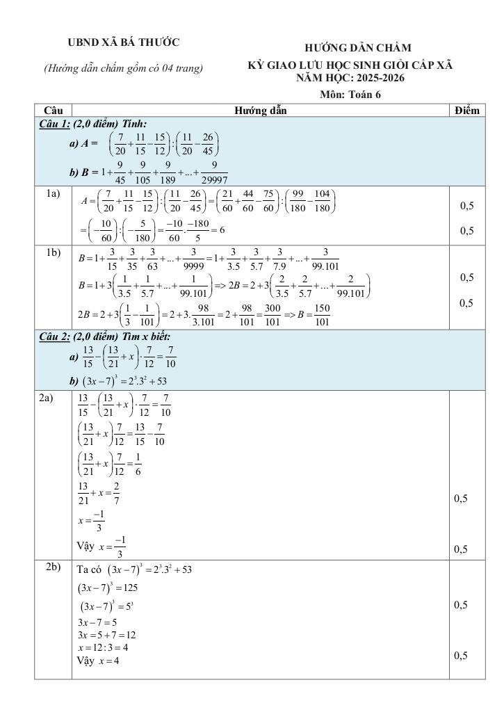 Giải Toán đề giao lưu hsg toán 6 năm 2025 – 2026 xã bá thước – thanh hóa với Đáp Án Mới Nhất