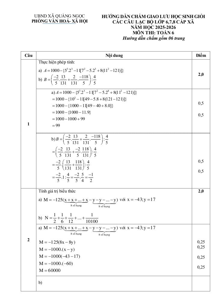 Giải Toán đề giao lưu hsg toán 6 năm 2025 – 2026 xã quảng ngọc – thanh hóa với Đáp Án Mới Nhất