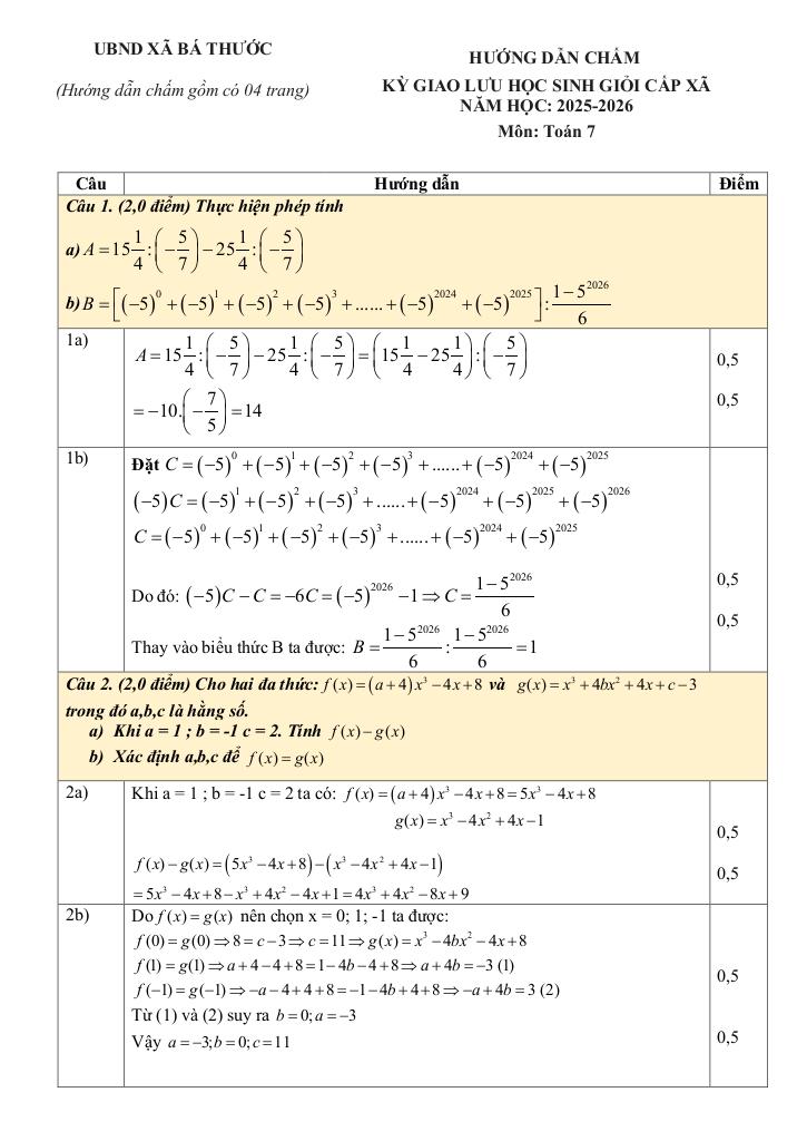 Giải Toán đề giao lưu hsg toán 7 năm 2025 – 2026 xã bá thước – thanh hóa với Đáp Án Mới Nhất