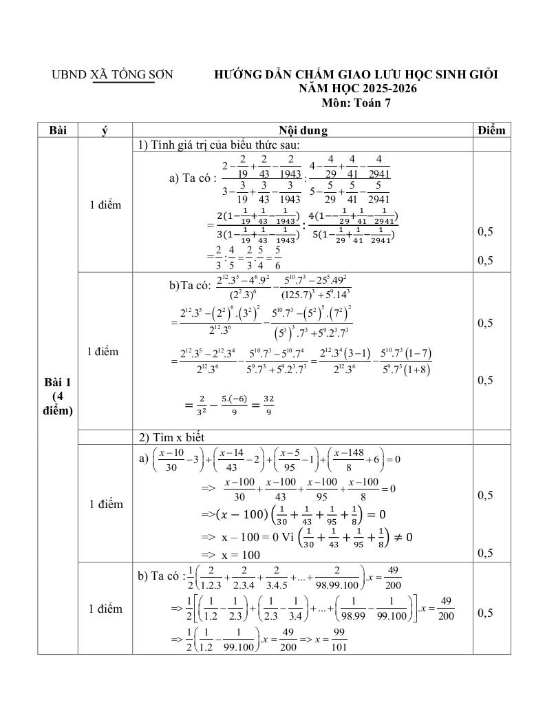 Giải Toán đề giao lưu hsg toán 7 năm 2025 – 2026 xã tống sơn – thanh hóa với Đáp Án Mới Nhất
