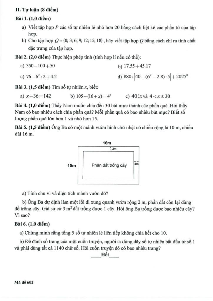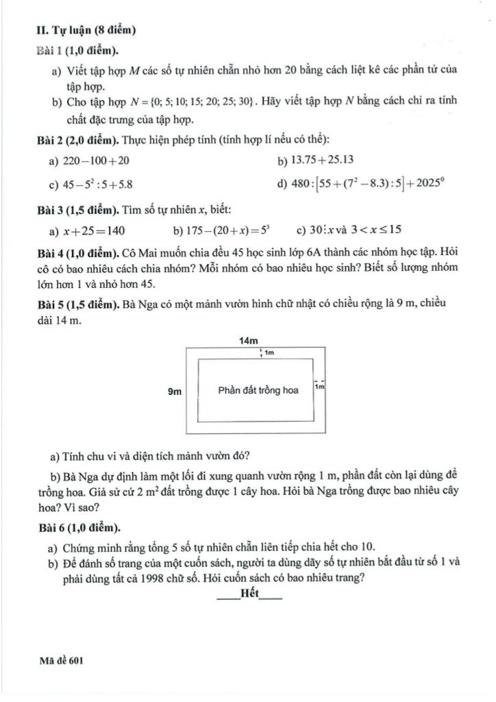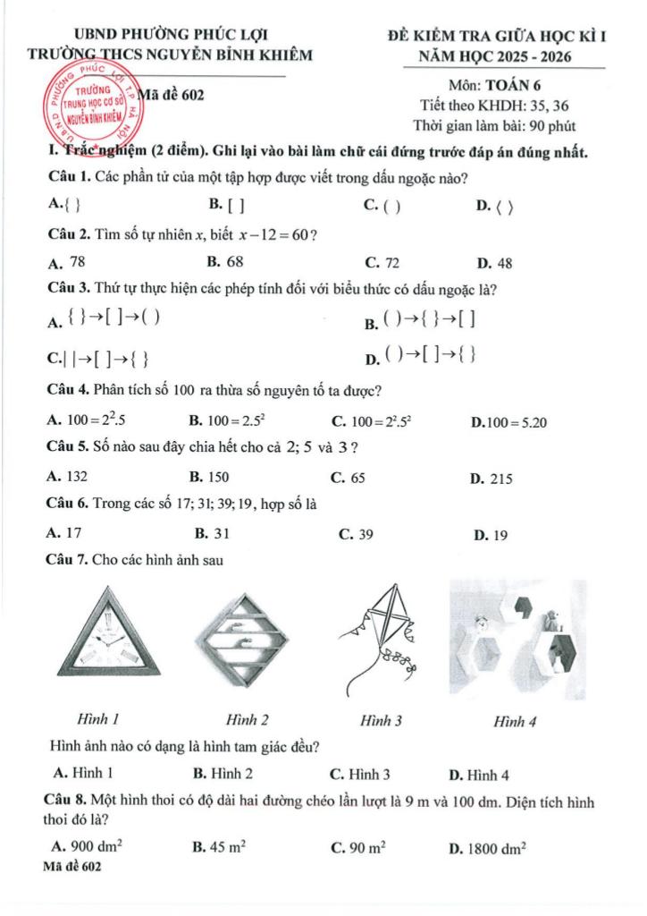 Trích dẫn Đề giữa học kì 1 Toán 6 năm 2025 – 2026 trường THCS Nguyễn Bỉnh Khiêm – Hà Nội: