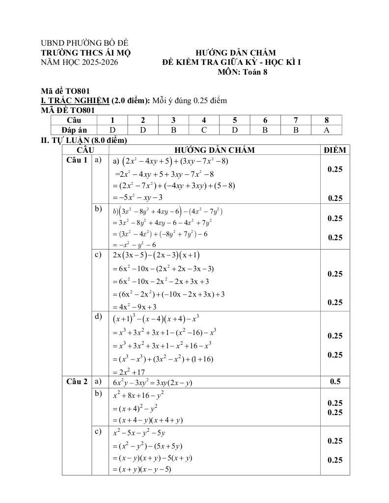Giải Toán đề giữa học kì 1 toán 8 năm 2025 – 2026 trường thcs ái mộ – hà nội với Đáp Án Mới Nhất