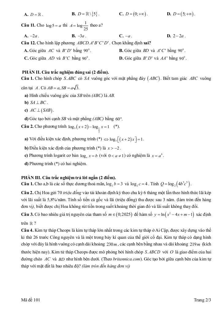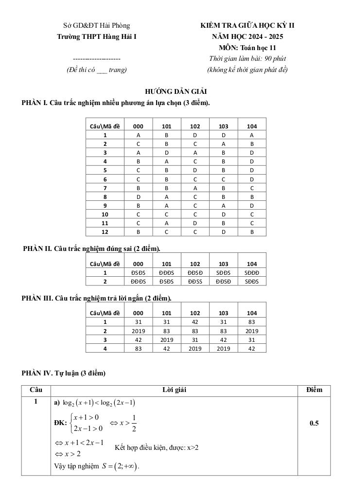 Toán học luôn là một môn học quan trọng, giúp học sinh phát triển tư duy logic và kỹ năng giải quyết vấn đề. Để hỗ trợ các bạn học sinh và giáo viên trong việc học tập và giảng dạy, bài viết này sẽ cung cấp lời giải chi tiết và đáp án chính xác cho chủ đề đề giữa học kì 2 toán 11 năm 2024 – 2025 trường thpt hàng hải 1 – hải phòng, giúp bạn hiểu sâu và tự tin hơn khi làm bài tập.