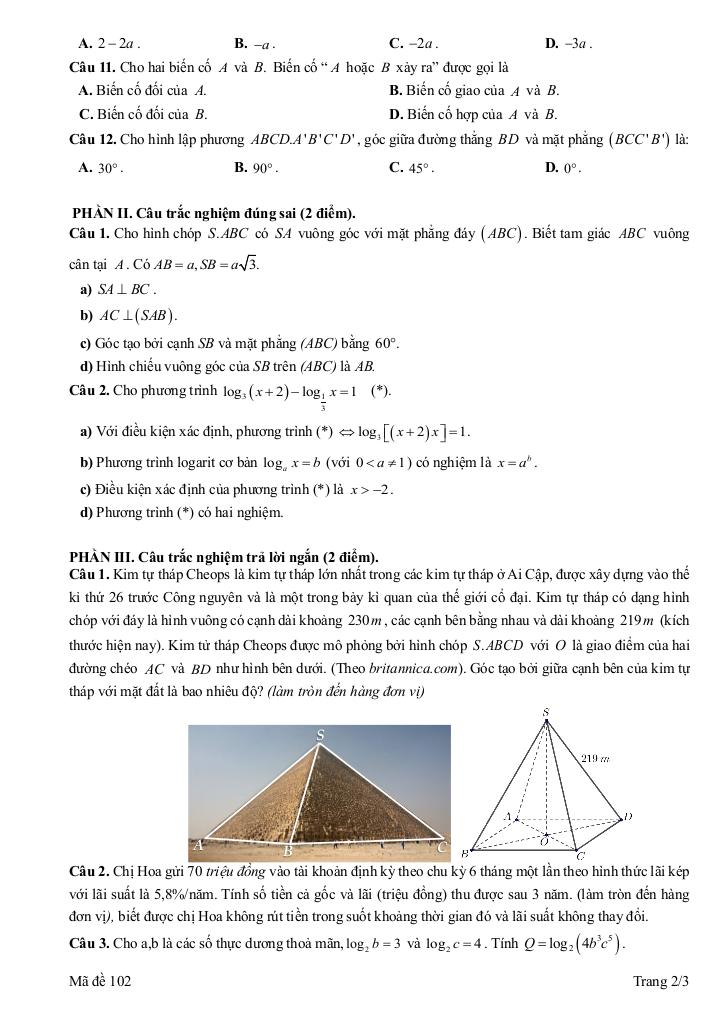 >> Xem thêm đáp án chi tiết về: đề giữa học kì 2 toán 11 năm 2024 – 2025 trường thpt hàng hải 1 – hải phòng.