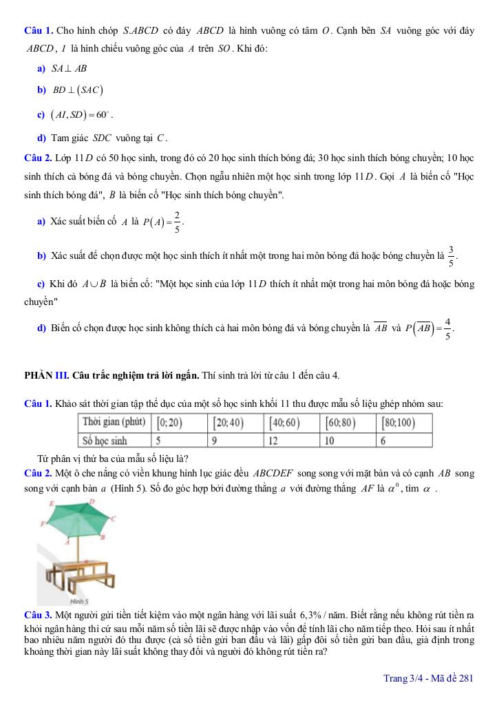 Giải Toán đề giữa học kì 2 toán 11 năm 2024 – 2025 trường thpt yên mô a – ninh bình với Đáp Án Mới Nhất