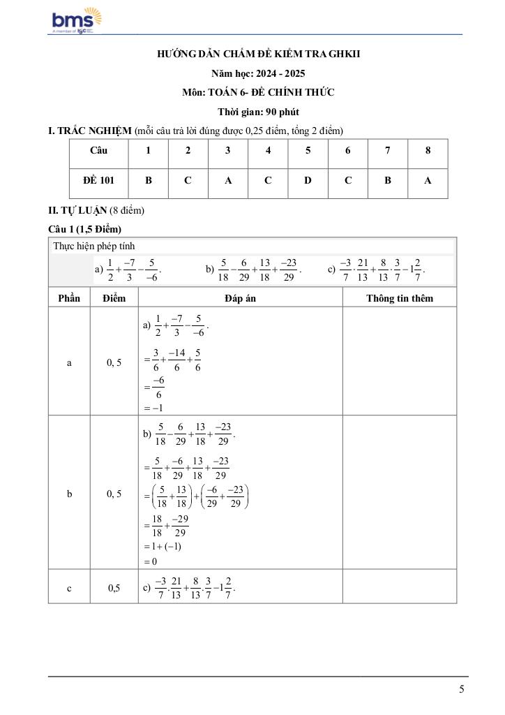 Toán học luôn là một môn học quan trọng, giúp học sinh phát triển tư duy logic và kỹ năng giải quyết vấn đề. Để hỗ trợ các bạn học sinh và giáo viên trong việc học tập và giảng dạy, bài viết này sẽ cung cấp lời giải chi tiết và đáp án chính xác cho chủ đề đề giữa học kì 2 toán 6 năm 2024 – 2025 trường ban mai school – hà nội, giúp bạn hiểu sâu và tự tin hơn khi làm bài tập.