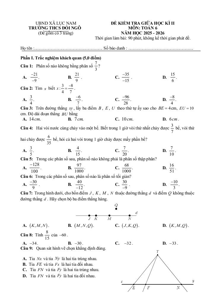 Toán học luôn là một môn học quan trọng, giúp học sinh phát triển tư duy logic và kỹ năng giải quyết vấn đề. Để hỗ trợ các bạn học sinh và giáo viên trong việc học tập và giảng dạy, bài viết này sẽ cung cấp lời giải chi tiết và đáp án chính xác cho chủ đề đề giữa học kì 2 toán 6 năm 2025 – 2026 trường thcs đồi ngô – bắc ninh, giúp bạn hiểu sâu và tự tin hơn khi làm bài tập.