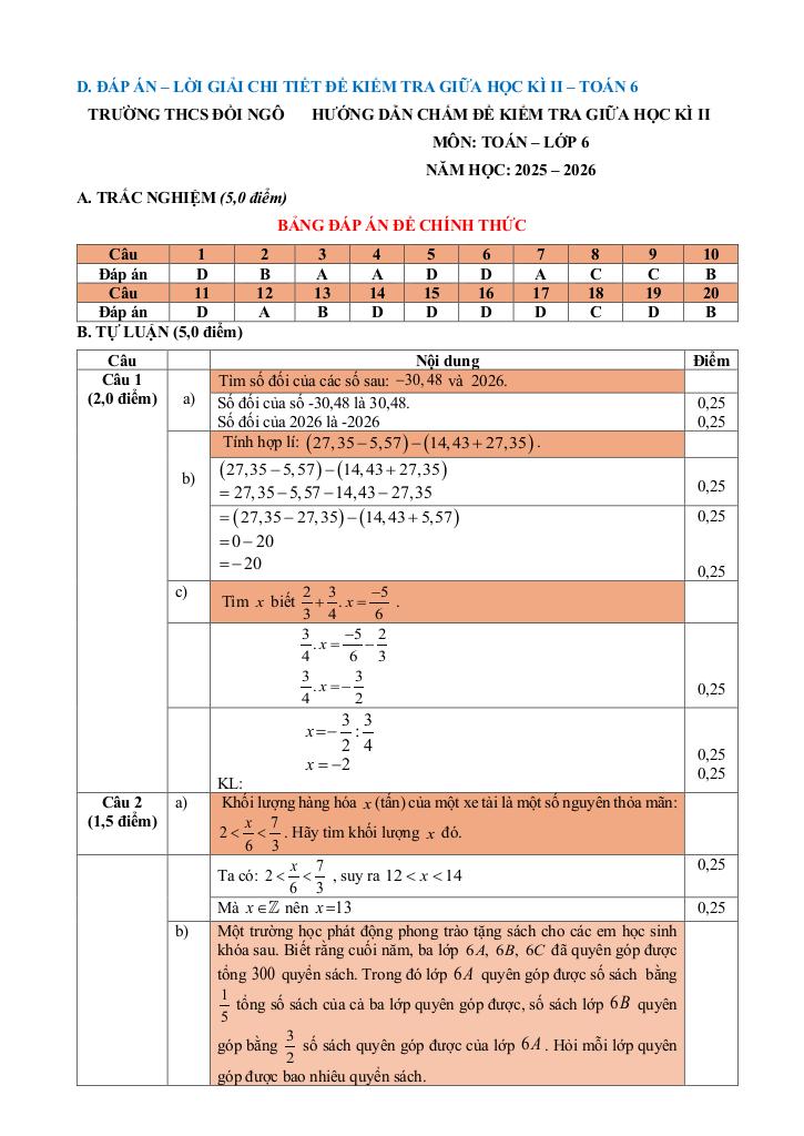 Giải Toán đề giữa học kì 2 toán 6 năm 2025 – 2026 trường thcs đồi ngô – bắc ninh với Đáp Án Mới Nhất