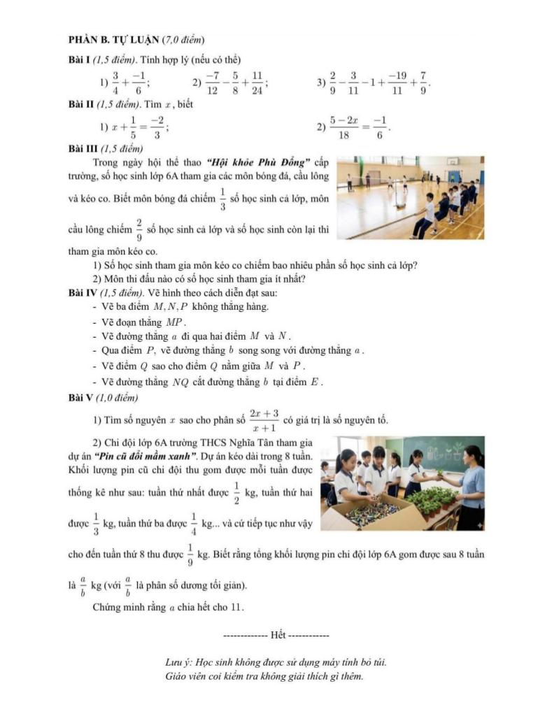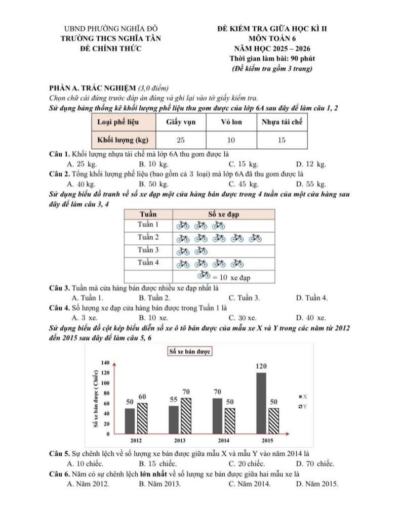 Trích dẫn Đề giữa học kì 2 Toán 6 năm 2025 – 2026 trường THCS Nghĩa Tân – Hà Nội: