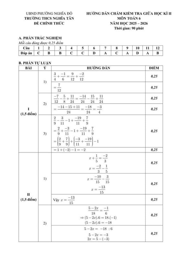 Giải Toán đề giữa học kì 2 toán 6 năm 2025 – 2026 trường thcs nghĩa tân – hà nội với Đáp Án Mới Nhất
