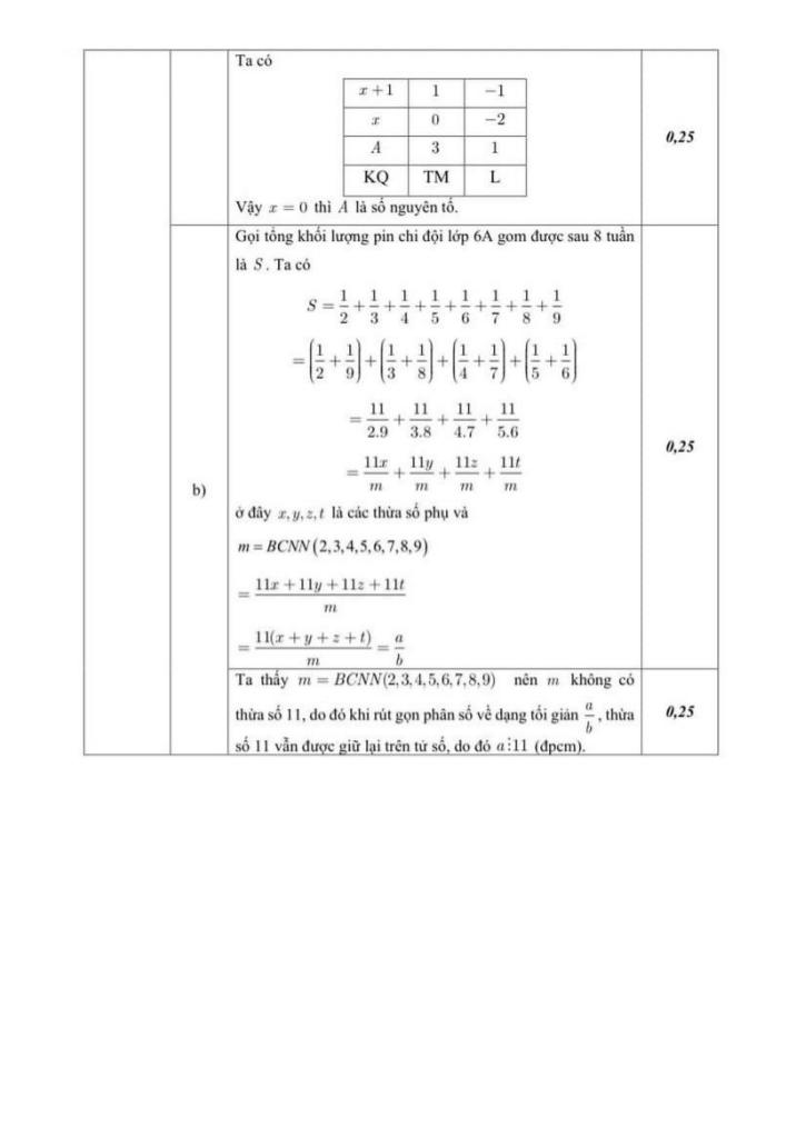 + Chi đội lớp 6A trường THCS Nghĩa Tân tham gia dự án “Pin cũ đổi mầm xanh”. Dự án kéo dài trong 8 tuần. Khối lượng pin cũ chi đội thu gom được mỗi tuần được thống kê như sau: tuần thứ nhất được 1/2 kg, tuần thứ hai được 1/3 kg, tuần thứ ba được 1/4 kg … và cứ tiếp tục như vậy cho đến tuần thứ 8 thu được 1/9 kg. Biết rằng tổng khối lượng pin chi đội lớp 6A gom được sau 8 tuần là a/b kg (với a/b là phân số dương tối giản). Chứng minh rằng a chia hết cho 11.