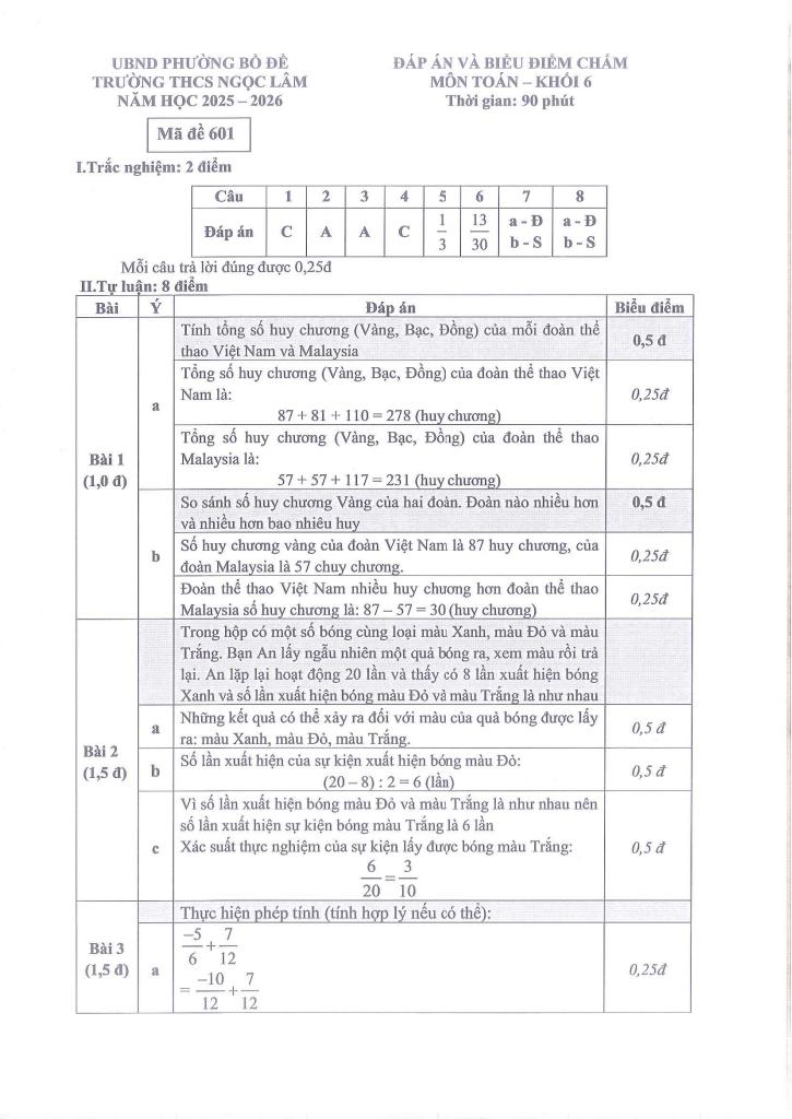 giaitoan.edu.vn giới thiệu đến quý thầy, cô giáo và các em học sinh đề chính thức kiểm tra giữa học kì 2 môn Toán 6 năm học 2025 – 2026 trường THCS Ngọc Lâm, phường Bồ Đề, thành phố Hà Nội. Kỳ thi được diễn ra vào ngày 23 tháng 03 năm 2026. Đề thi có đáp án, lời giải chi tiết và hướng dẫn chấm điểm.