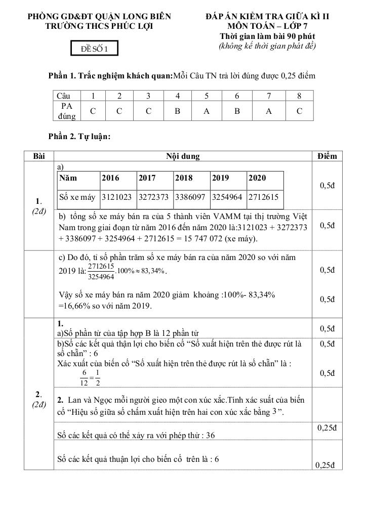 Giải Toán đề giữa học kì 2 toán 7 năm 2024 – 2025 trường thcs phúc lợi – hà nội với Đáp Án Mới Nhất