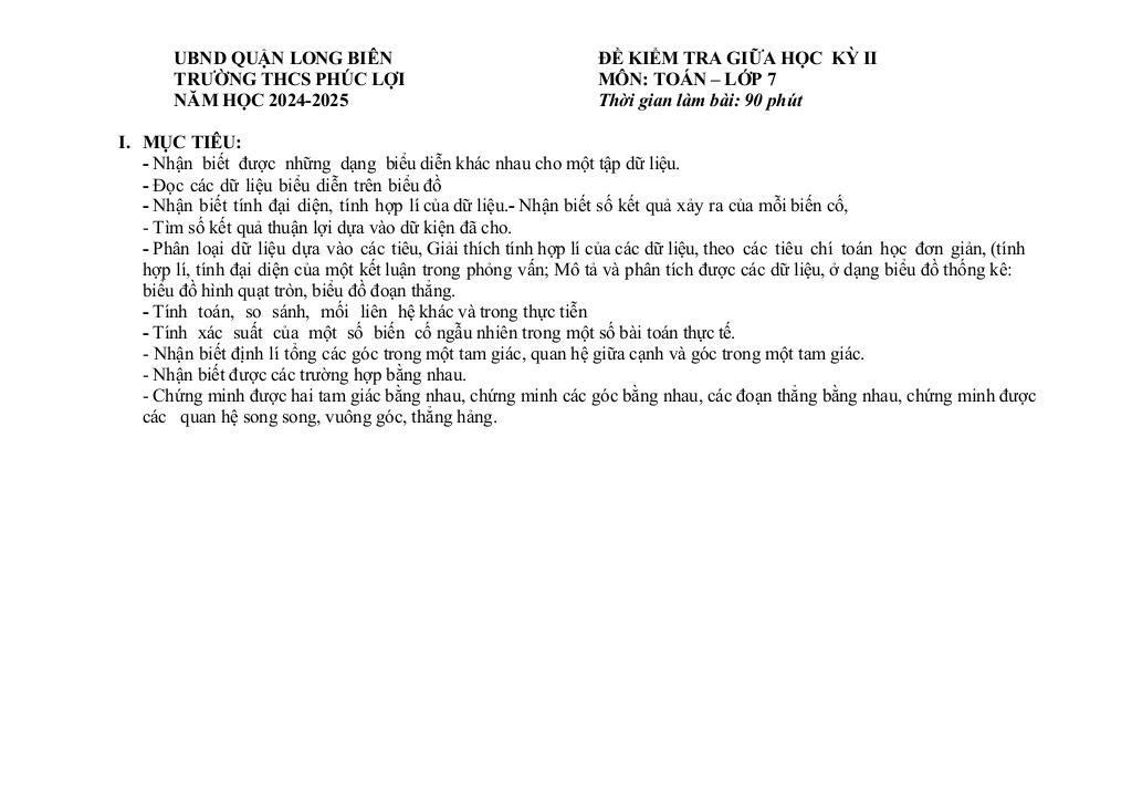 đề giữa học kì 2 toán 7 năm 2024 – 2025 trường thcs phúc lợi – hà nội là một trong những phần kiến thức quan trọng trong chương trình toán học, thường xuất hiện trong các bài kiểm tra và kỳ thi lớn. Việc nắm vững phần này không chỉ giúp bạn đạt điểm cao mà còn tạo nền tảng vững chắc để học các nội dung nâng cao hơn.